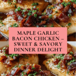 Keywords: maple garlic chicken, bacon chicken recipe, baked chicken breasts, easy chicken dinner, sweet and savory chicken