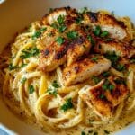 This Irresistibly Easy Cowboy Butter Chicken Linguine is a creamy, flavorful pasta dish featuring tender chicken breasts cooked in a luscious garlic butter sauce, enriched with Dijon mustard, lemon, and Parmesan cheese. Ready in just 30 minutes, it’s a perfect weeknight dinner combining comforting creaminess with a hint of zesty freshness.