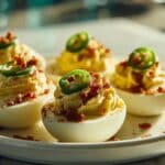 Keywords: Jalapeño Popper Deviled Eggs, Spicy Deviled Eggs, Keto Appetizer, Low Carb Deviled Eggs, Jalapeño Recipe, Bacon Deviled Eggs, Cream Cheese Deviled Eggs