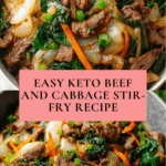 This Keto Beef and Cabbage Stir-Fry is a delicious, low-carb recipe combining tender beef sirloin with crisp green cabbage and aromatic garlic and ginger. Perfectly seasoned with soy sauce and sesame oil, it’s a quick and healthy meal option ideal for keto and low-carb diets.