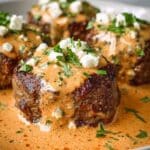 PrintKeto Feta Burgers With Tomato Cream Sauce Recipe