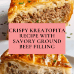 Kreatopita is a traditional Greek meat pie that’s both hearty and flavorful. With a delicious ground beef and rice filling wrapped in crispy phyllo dough, it makes a perfect comforting meal for any occasion.