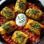 Store leftover stuffed cabbage rolls in an airtight container in the refrigerator for up to 3 days. Reheat gently on the stovetop or in the microwave until warmed through. You can also freeze the rolls in sauce for up to 2 months; thaw overnight in the fridge before reheating.