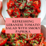 Lebanese Tomato Salad is a fresh and vibrant dish featuring juicy campari tomatoes tossed with a flavorful smoky paprika and sumac dressing made from roasted red bell pepper and garlic. Finished with fresh parsley, this salad is a perfect light appetizer or side dish that bursts with Mediterranean flavors.