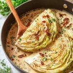 - Assemble for Baking: Nestle the seared cabbage wedges into the creamy sauce in the skillet. Cover the skillet with a lid or foil.