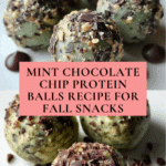 Keywords: mint chocolate chip protein balls, no bake protein balls, healthy snack, mint protein balls, chocolate chip energy bites, almond butter protein balls