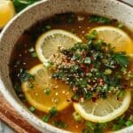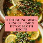 A soothing, flavorful Miso-Ginger Lemon Detox Broth that combines the gut-friendly benefits of miso and ginger with the refreshing zest of lemon. This light, vegetarian broth is perfect as a detoxifying drink or a base for heartier soups, offering comforting warmth and layers of umami and spice.