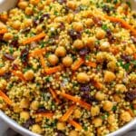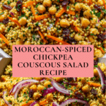 This vibrant Moroccan-Spiced Chickpea and Carrot Couscous Salad combines fluffy couscous with tender chickpeas, freshly grated carrots, and aromatic spices. Enhanced with sweet raisins and fresh parsley, and dressed in a zesty, spiced lemon and olive oil dressing, it’s perfect as a refreshing lunch or side dish that’s both nutritious and flavorful.
