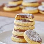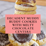 Muddy Buddy Cookies are soft, peanut buttery cookies with a sweet sugar coating, melted chocolate center, and a light dusting of powdered sugar on top. These delicious treats combine creamy peanut butter, a perfect sugar balance, and chocolate, making them ideal for any occasion or dessert craving.