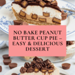 Keywords: no bake pie, peanut butter pie, peanut butter cup pie, easy dessert, no bake dessert, creamy peanut butter pie