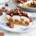 Keywords: no bake pie, peanut butter pie, peanut butter cup pie, easy dessert, no bake dessert, creamy peanut butter pie