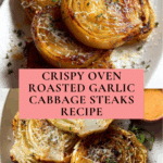 Keywords: oven roasted cabbage steaks, garlic cabbage steaks, roasted vegetables, vegan side dish, healthy cabbage recipe, baked cabbage, easy vegetable side