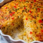 This Pepper Jack Rice Bake is a creamy, cheesy casserole combining cooked rice with sautéed bell peppers and onions, green chiles, corn, and Pepper Jack cheese. Baked to golden bubbly perfection, it makes a comforting and flavorful side dish or light main course with a mild spicy kick.