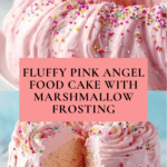 This delicate pink angel food cake is light, fluffy, and perfect for celebrations. Topped with a luscious pink marshmallow frosting and optional sprinkles, it’s sure to brighten any dessert table.