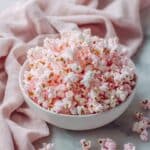 Keywords: Pink popcorn, Valentine’s Day snack, sweet popcorn, colored popcorn, festive popcorn recipe