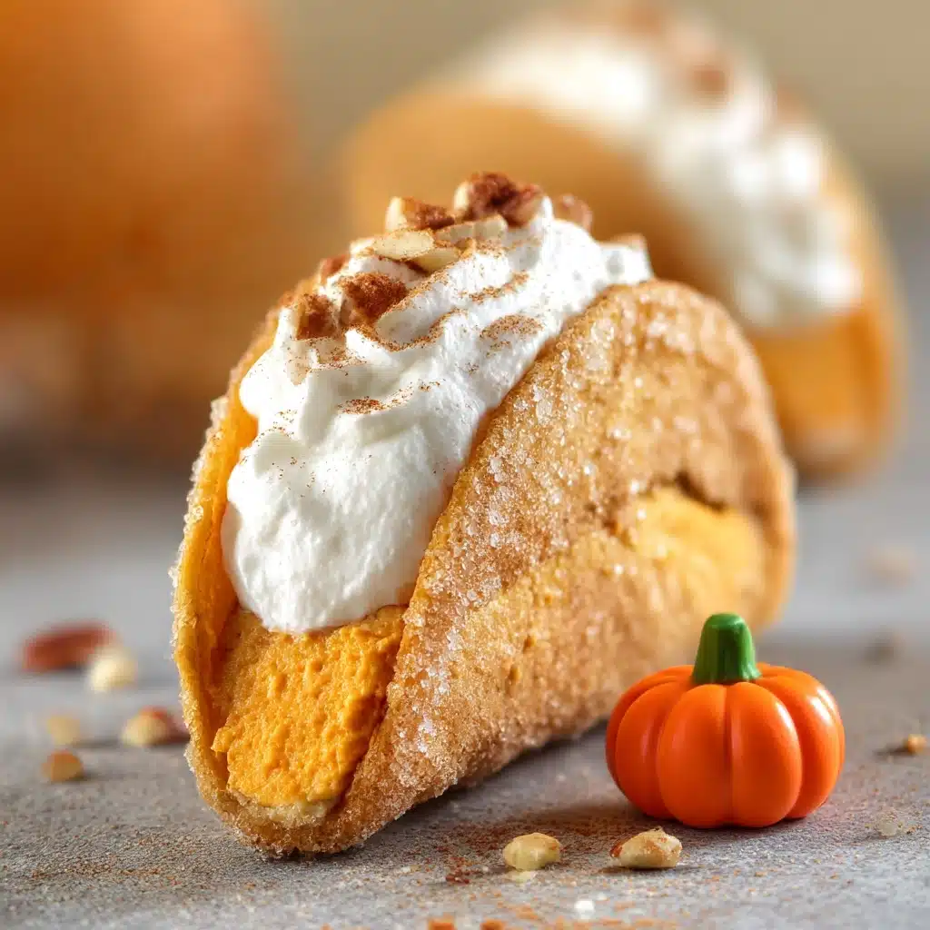 Carefully spoon or pipe the pumpkin filling into each cooled taco shell. Top generously with the whipped cream, then sprinkle with a pinch of cinnamon or chopped pecans for that final flair. Serve immediately to enjoy the perfect combination of crisp, creamy, and sweet textures.