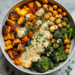 This Roasted Vegetable & Chickpea Bowl with Tahini Dressing is a flavorful, nourishing dish perfect for a wholesome meal. Packed with vibrant roasted veggies and protein-rich chickpeas, it’s both satisfying and easy to prepare. The creamy tahini dressing adds a delicious nutty finish that ties everything together beautifully.