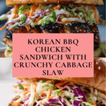 Keywords: Korean BBQ chicken sandwich, Korean chicken sandwich, chicken thigh sandwich, crunchy slaw, stove cooked Korean chicken, Korean marinade chicken, easy Korean sandwiches