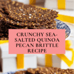 This sea-salted quinoa pecan brittle is a delightful twist on classic brittle, offering a crunchy texture and a perfect balance of sweet and salty flavors. With the nuttiness of finely chopped pecans and a hint of sesame seeds, it’s a unique treat that’s both satisfying and irresistible.