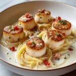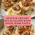 Sea Scallops with Angel Hair Pasta is a light yet indulgent dish perfect for a special weeknight dinner. Tender scallops sautéed in butter and garlic pair beautifully with delicate angel hair pasta and fresh herbs, making a quick and elegant meal.