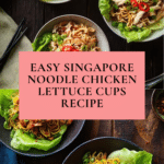 Delicious Singapore Noodles and Chicken Lettuce Cups offer a light, flavorful meal featuring tender chicken, vibrant vegetables, and thin rice noodles seasoned with a savory stir-fry sauce, all wrapped in crisp lettuce leaves for a fresh and healthy dining experience.