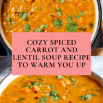 A hearty and flavorful Spiced Carrot and Lentil Soup that combines aromatic spices, fresh ginger, and tender red lentils for a nutritious and comforting meal. Perfect for chilly days, this soup is easy to prepare, blending warmth and nourishment in every spoonful.