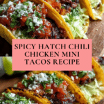 These Spicy Hatch Chili Chicken Mini Tacos are a flavorful bite-sized treat perfect for any occasion. Tender chicken thighs marinated with smoky spices and Hatch green chilies deliver a vibrant kick, complemented by a tangy lime and honey glaze. Easy to assemble and delightfully fresh, they make an irresistible appetizer or light meal.
