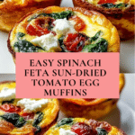 Keywords: Spinach egg muffins, feta cheese muffins, sun-dried tomato breakfast, healthy egg muffins, baked egg muffins, Mediterranean breakfast