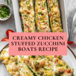 Keywords: stuffed zucchini boats, creamy chicken zucchini, baked zucchini recipe, chicken stuffed vegetables, low carb dinner, healthy stuffed zucchini