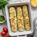PrintStuffed Zucchini Boats with Creamy Chicken Recipe