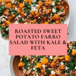 Keywords: sweet potato salad, farro salad, kale salad, roasted vegetables, Mediterranean salad, healthy salad, vegetarian salad, fall salad