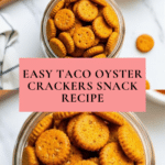 These Taco Oyster Crackers are a crunchy, flavorful snack perfect for parties or everyday munching. Coated with a zesty blend of taco seasoning, garlic powder, oregano, and chili powder, then baked to crispy perfection, they’re an addictive treat that’s easy to make and customize to your preferred spice level.