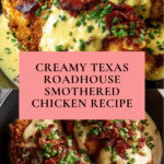 Keywords: Texas Roadhouse smothered chicken, creamy garlic chicken, baked chicken breasts, Jack cheese chicken, hearty chicken dinner