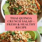 This Thai Quinoa Crunch Salad is a vibrant, healthy dish packed with fresh vegetables, fragrant herbs, and a tangy dressing. It’s a perfect light meal or side that combines the nuttiness of quinoa with crunchy peanuts and sesame seeds for an exciting texture.