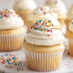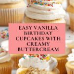 These Vanilla Birthday Cupcakes are moist, tender, and bursting with rich vanilla flavor. Perfectly topped with creamy vanilla buttercream and festive sprinkles, they make a delightful treat for any celebration.